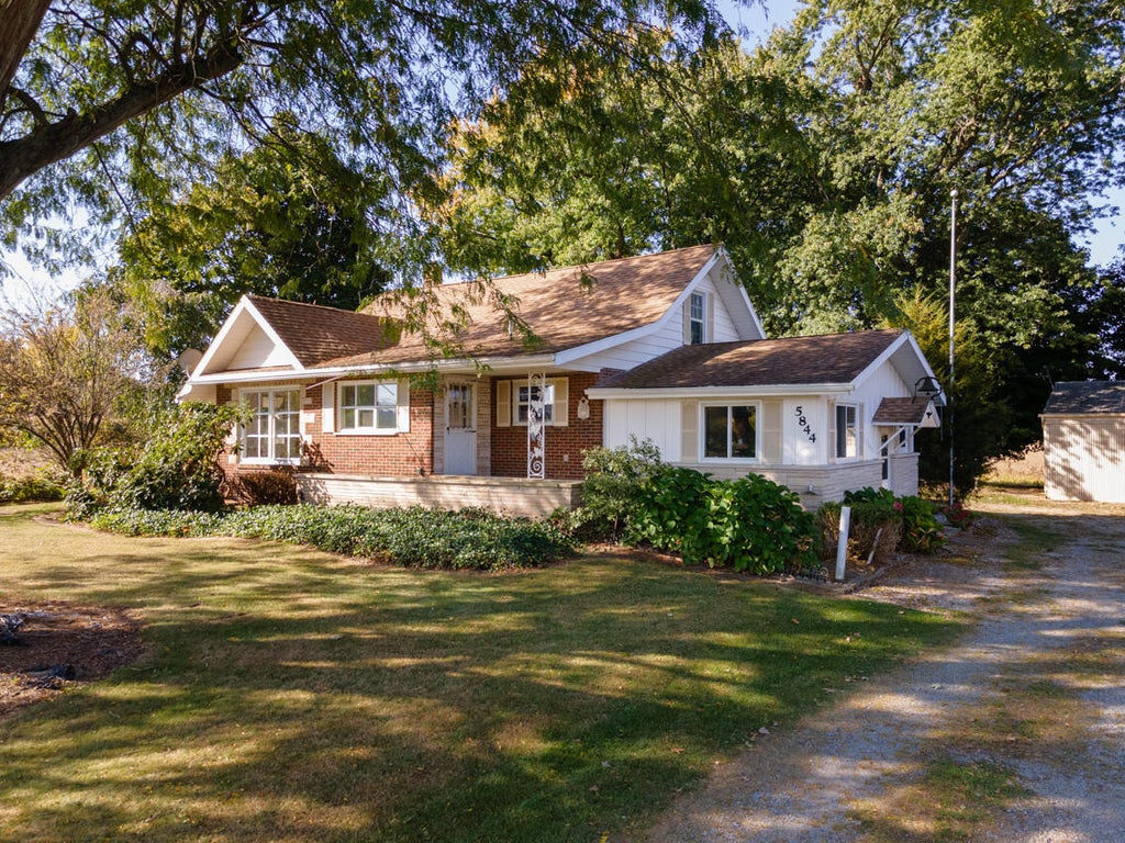 1887 sq. ft., two story custom built brick farmhouse with addition in 1975, plus 500 sq. ft. detached office/apartment, on 1.4 acres, 5844 S. Scottdale Road, Berrien Springs, 49103. 4 bedrooms, 2 baths, full dry partially finished basement (460 sq. ft. of 810 sq. ft.), separate office area, laundry on first floor, well insulated, 200 amp breaker box, whole house water filter, water softener, dehumidifier, dinner bell, flagpole and two detached 1 1/2 car garages about 50 ft. from house in 32' x 48' pole barn. Lakeshore Schools. Walking distance to Royalton Township Park and Tri Unit Fire Station. Well water and 2 septics. All electric, each room with its own thermostat. New stove, dishwasher and garbage disposal. All appliances included. Regulation 1960's Brunswick pool table. Somefurnishings available. Large window A/C that services the first level only. Nicely landscaped. You should expect limited surrounding farm activities. Pole barn includes a 500 sq. ft. farm office with finished kitchen, one-bedroom, full bath and living area with wood burning stove. Essentially, 2387 sq. ft. of 4 seasons living area between the 2 buildings (5844 & 5830 S. Scottdale Rd.) or $193 per sq. ft. Residential Rental possibilities. Survey available. High speed internet (Comcast/Xfinity) and natural gas available at the road. New roof in 2013. New seal coating on pole barn roof in 2021. All shutters, windows and exteriors on the house and pole barn were freshly painted in 2021 and 2024. Luxury Vinyl Plank flooring in 2024 on most of the first floor. Some Concord grapes for personal use and farm rental income. Rear yard and pole barn cleanup/removal of farm personal property remains after recent farm estate sale. May consider Owner Financing with 30% down but only if your credit allows and with some restrictions. All gray water and septic systems examined in 2023. (Existing PIN 11-17-0030-0040-01-3). Other than replacing the basement carpet (if you choose), the house is move in ready.