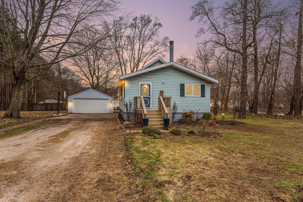 Steps from Peach Plains Elementary, this 3-bedroom, 1-bath home delivers the perfect mix of comfort and convenience. From its extra-wide lot and oversized garage with a workshop to the thoughtful interior, every detail makes daily living easier and more enjoyable. Inside, the kitchen takes center stage with Whirlpool appliances, quartz countertops, and modern cabinetry--ideal for both weeknight meals and weekend entertaining. The fireplace invites cozy evenings, while new laminate flooring gives the home a fresh, clean-lined feel. A flexible home office provides space for work, hobbies, or study time. Downstairs, a full unfinished basement offers bonus storage or room to finish. Outside, a back deck ready for relaxing or hosting friends. Recent updates, including a new roof, concrete driveway, plumbing, and electrical, mean less maintenance and more time to enjoy the nearby trails, beach, and recreation areas at Pottawatomie Park.